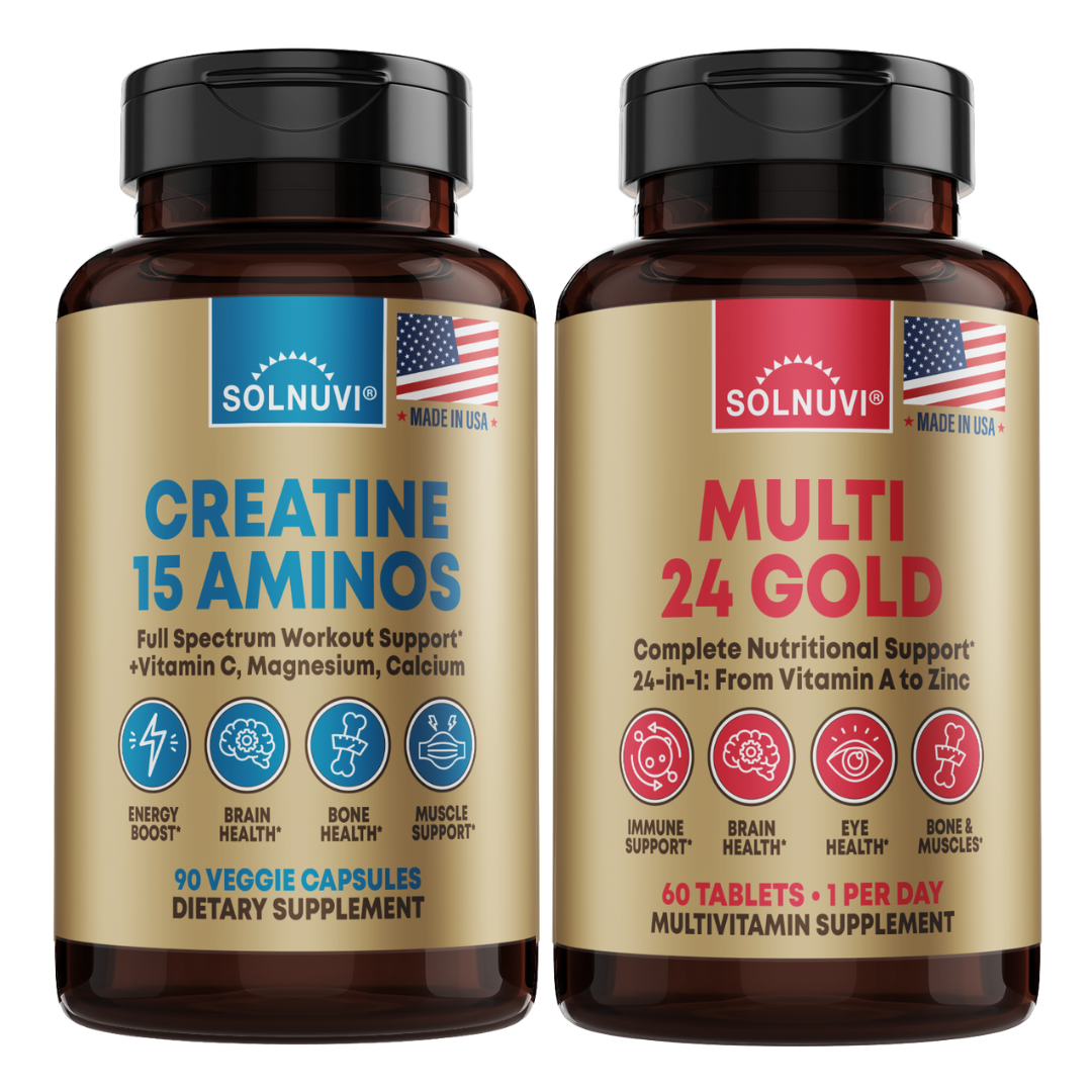 Take 3 veggie capsules of Creatine + 15 Aminos & 1 tablet of Multi 24 Gold once daily with meal and at least 8oz of water, or as recommended by a licensed healthcare practitioner.