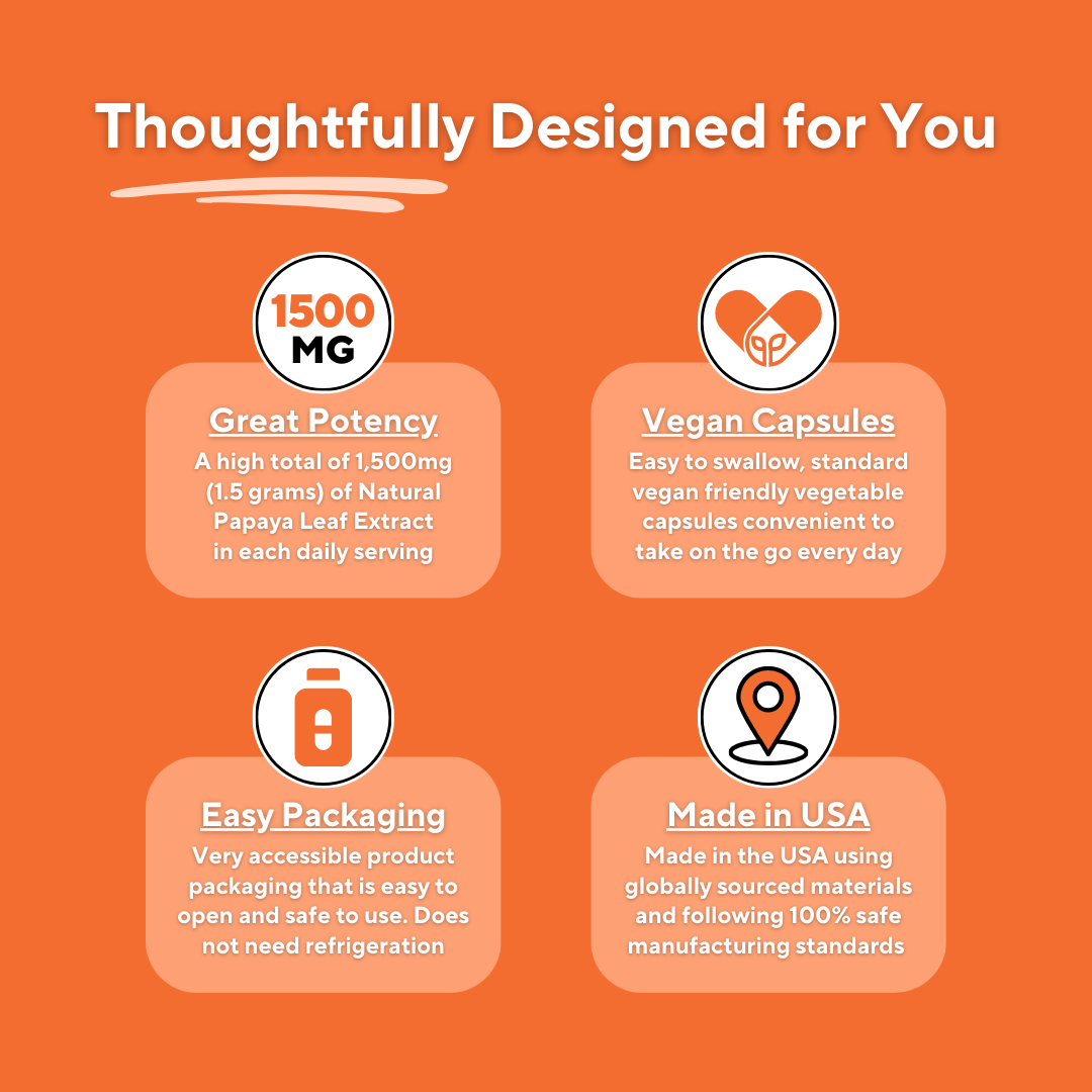 You can make the most out of your Papaya intakes by combining our supplement with a relatively healthy diet, daily hydration, and consistent exercises.