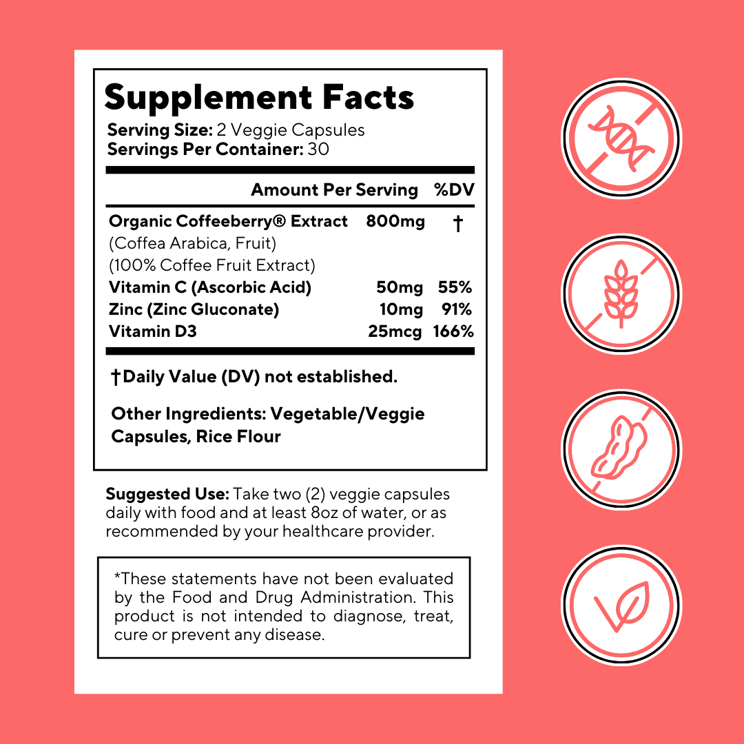 Vitacoffee Coffee Fruit is manufactured at a FDA-registered and cGMP compliant facility to ensure product consistency and safety.